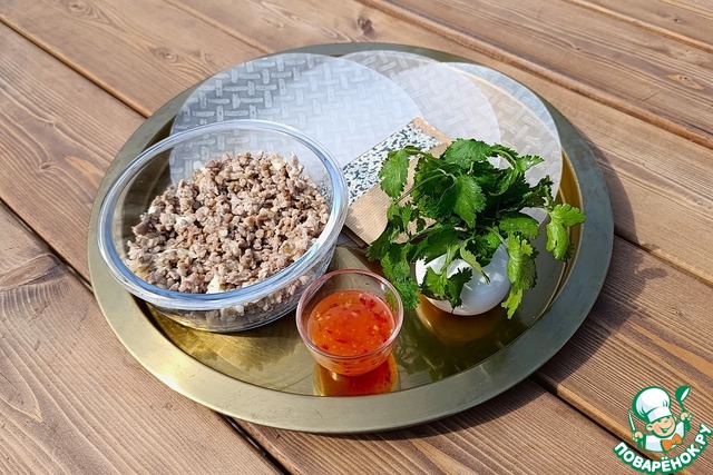 Ингредиенты для «Чебуреки из индейки в рисовой бумаге»:
