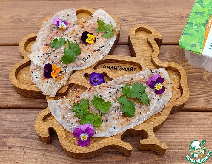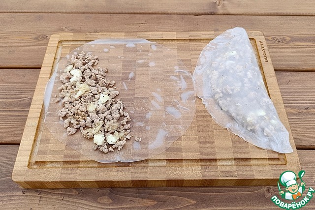 Рецепт «Чебуреки из индейки в рисовой бумаге»: