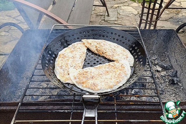 На пикнике - слегка смазать сковороду, в которой будете обжаривать чебуреки, растительным маслом. Чебуреки посыпать кунжутом, жарить до румяного колера.