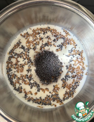 В маленьком сотейнике смешать молоко, гречневые хлопья и мак, добавить щепотку соли и довести до кипения.
