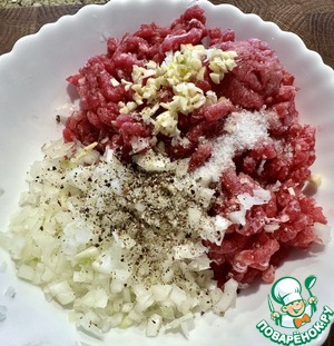 Памятую те времена, когда каких-то особых специй на наших кухнях не водилось, к фаршу я добавил: мелко нарубленную луковицу, зубчик чеснока тоже мелко изрубил, соль и немного чёрного перца. Всё.