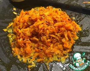 И добавить морковь. Нагрев не увеличивал. Продолжал заправку прогревать, не забывая перемешивать.