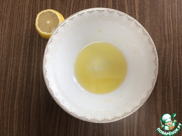 В чашу влить лимонный сок и 1 ст л растительного масла.