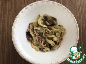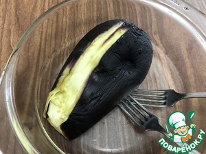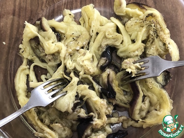 Выложить горячий баклажан в чашу с лимонным соком и растительным маслом.