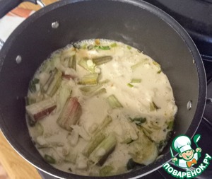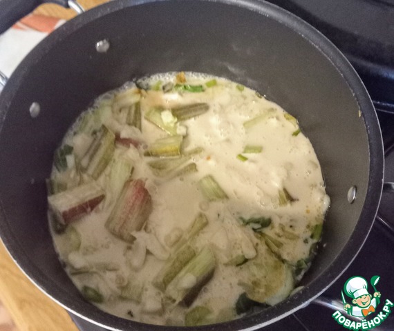 Добавить самбал и готовить минут 5 до размягчения ревеня.