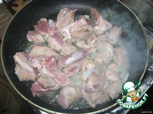 Лук мелко рубим, мясо нарезаем крупными кусками