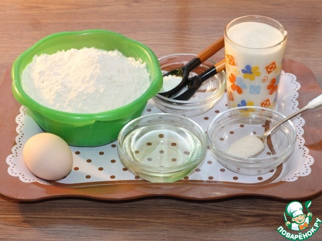 1. Подготовим продукты. Количество сахара и соли регулируйте в зависимости от того, какие кребли (или вергуны) хотите испечь — сладкие или соленые. У меня сладкий вариант.