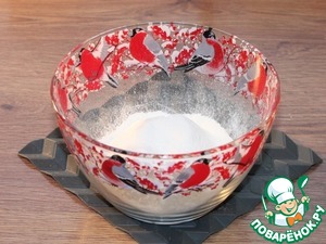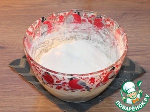 2. Часть муки (2/3 ч.) смешать с содой и просеять.