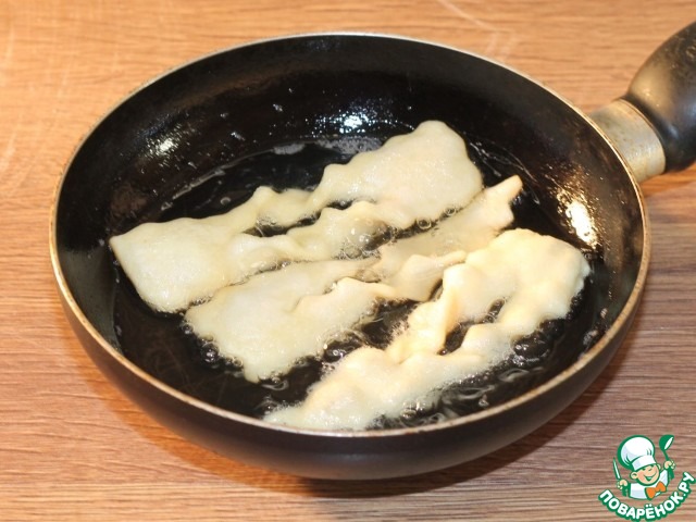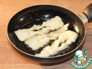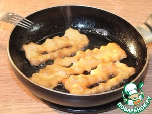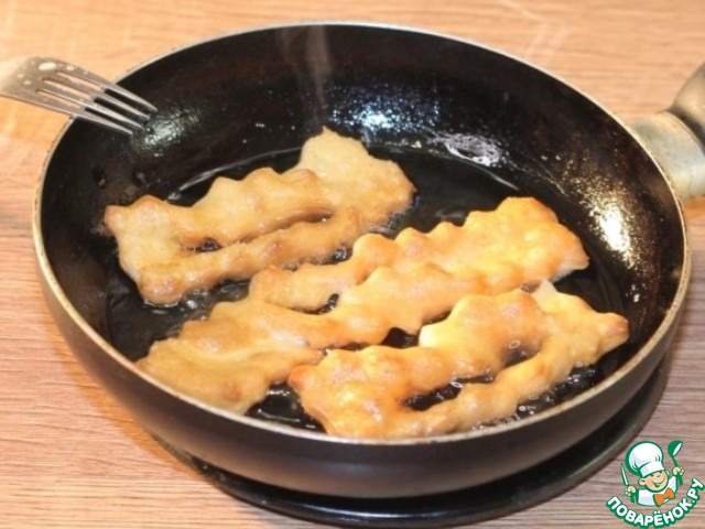 15. Обжарьте их до золотистого цвета с двух сторон. В процессе несколько раз переверните вергуны (кребли) при помощи двух вилок.