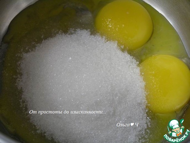 Желтки соедините в кастрюльке с сахаром и ванилином.