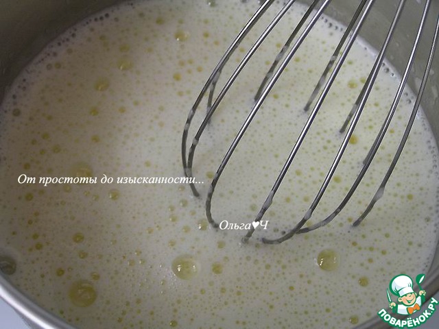 Влейте горячее молоко (***если не используете морковный соус, то подогрейте молоко со звездочками бадьяна), постоянно помешивая венчиком. Поставьте смесь на огонь и доведите почти до кипения (или пока от массы не начнет подниматься пар). Снимите с огня.