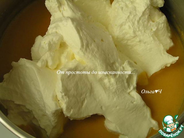 Отдельно взбейте сливки до устойчивости, добавьте в основную массу.