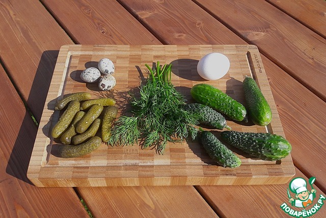 Свежие огурцы и укроп помыть. Яйца отварить.