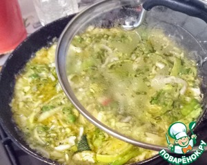 Наполовину накрыть крышкой. Готовить 17 минут, время от времени потряхивая сковороду, для того, чтобы иджех не прилипал ко дну.