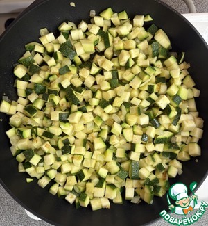 Добавить цуккини, жарить/тушить около 5 минут на слабом огне. Я больше тушу, чем жарю.