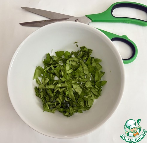 Базилик нарезать, я режу всегда ножницами, очень удобно.