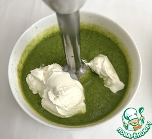 Добавить 200 гр греческого йогурта, лимонный сок и половину базилика, ещё раз пробить блендером. Попробовать на соль/перец, если необходимо- приправить.