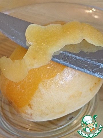 Помытые абрикосы очистить от кожицы (делать это надо маленьким ножом с тонким лезвием, кожицу снимать тонко).