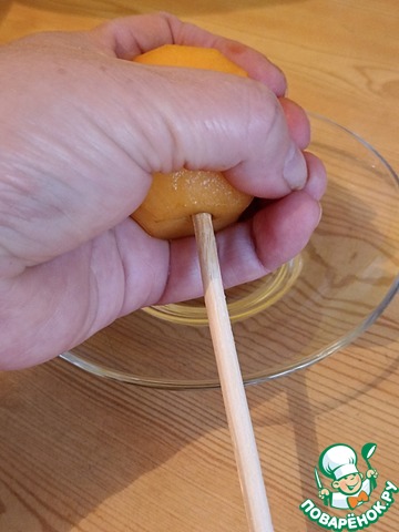 И вот так выглядит абрикос без косточки. То есть, не считая этой маленькой дырочки, которую потом в готовом варенье и не будет заметно, на абрикосе нет разреза.