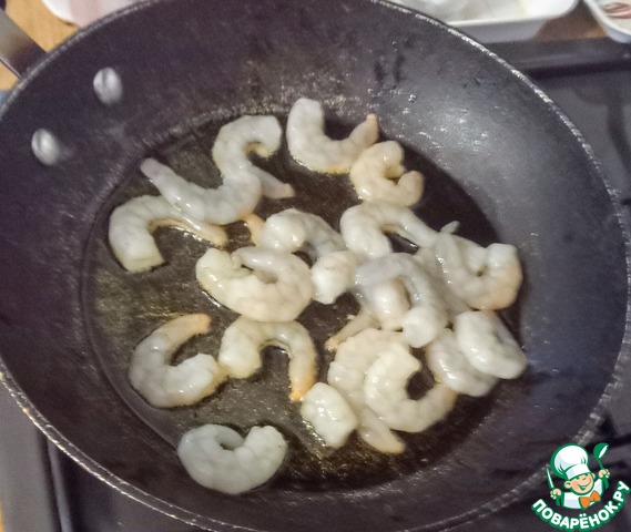 Добавьте креветки.