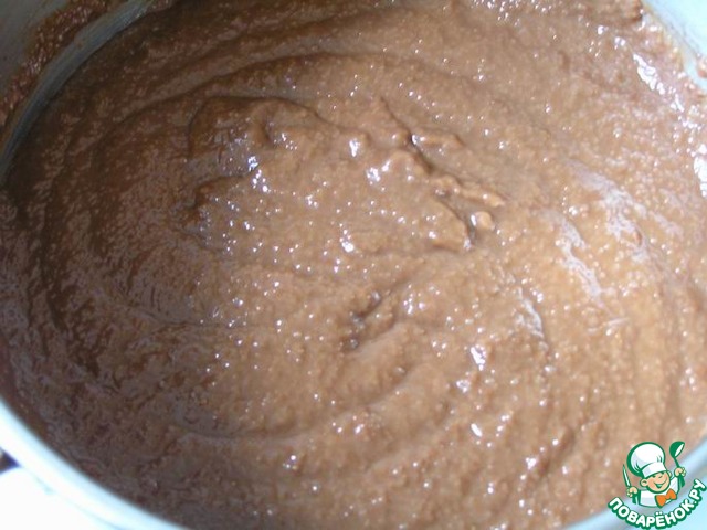 Сварите густую кашу из манной крупы и воды, постоянно помешивая венчиком. Добавьте шоколад, поломанный на кусочки, перемешайте.