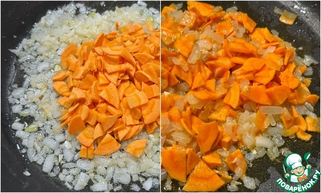Не меняя режима нагрева, но, повторюсь, постоянно перемешивая, переворашивая, довел морковь до слегка притомлённого состояния.