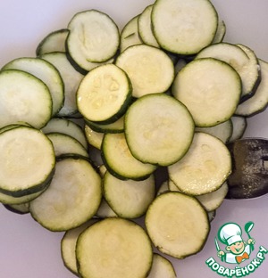 Разогреть духовку до 200С. В салатницу выложить слайсы цуккини. Добавить соль и оставить на 10 минут, для того, чтобы из цуккини вышли соки.
