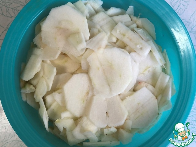 Достать яблоки выложить в дуршлаг, чтобы стек сок - его не выливать!!!