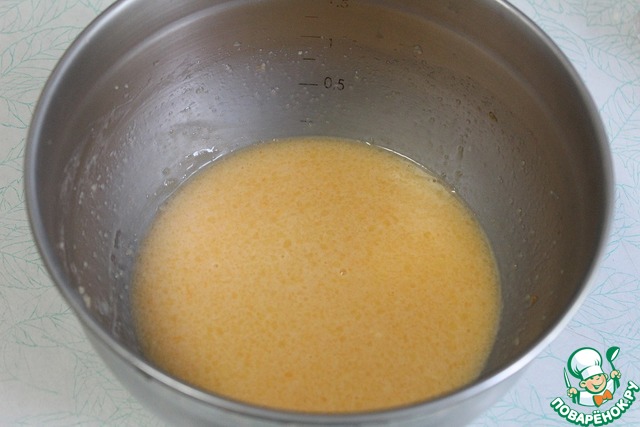 Достаем пирог и аккуратно выливаем равномерно заливку.