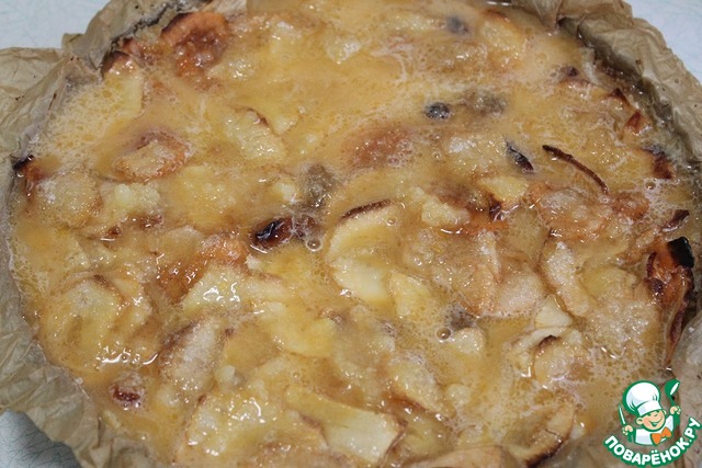 Наносим кисточкой на горячий пирог сок, который слили с яблок после ночи.