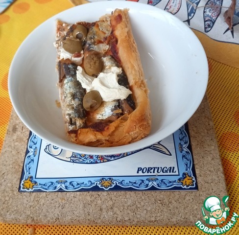 Готовить в духовке 12 минут до готовности теста и бурления сардинной смеси.
