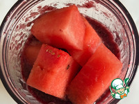 Добавить арбуз и ещё раз пробить блендером. У меня блендер небольшой, поэтому я пюрирую частями.