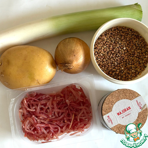 Ингредиенты для «Айнтопф с гречкой и луком-пореем»: