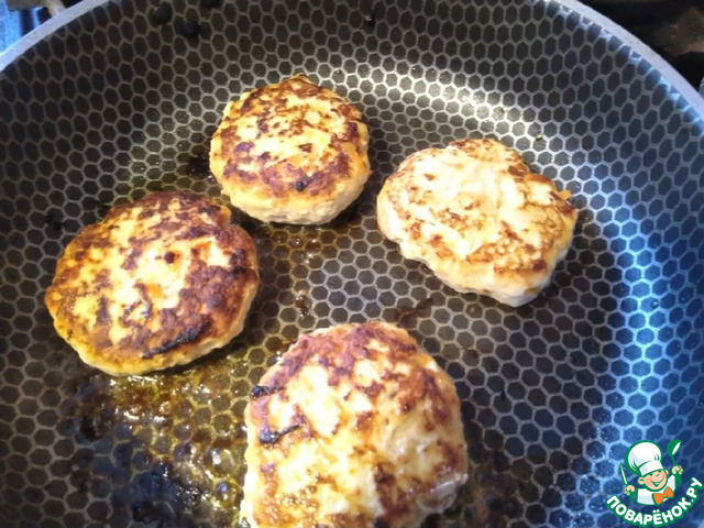 Приготовить фарш: мясо с луком прокрутить на мясорубке, добавить яйцо, специи, соль, обжаренную морковь. Хорошо вымешать. Слепить округлые биточки. Обжарить на растительном масле с двух сторон до зарумянивания.