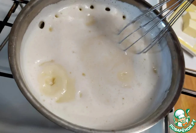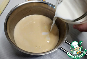 Непрерывно взбивая желтки одной рукой, тонкой струйкой влейте горячие сливки в миску. Затем быстро перелейте массу обратно в кастрюлю и верните на средний огонь. Взбивайте до загустения, однородности и появления первых пузырьков. Если вы все-таки перегрели массу и она начала сворачиваться, переложите ее в миску и взбивайте до однородного состояния.