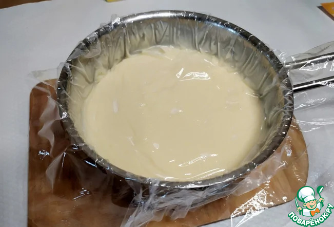 Переложите крем в миску, закройте пленкой и оставьте остывать.