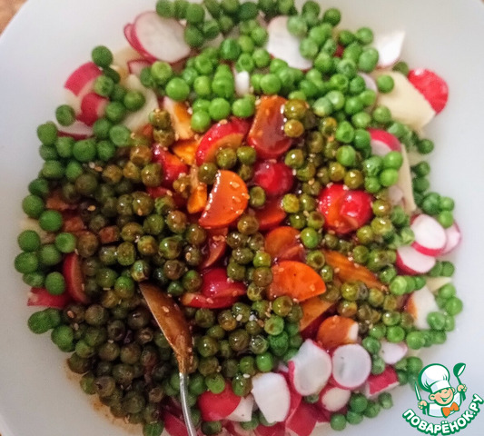 - Горошек зеленый (разморозить, если используете замороженный горошек) — 200 капл.