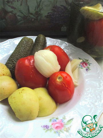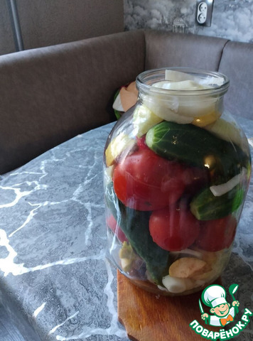 [+5]Меня и летом не смутили пропорции, потому что готовлю много много лет уже, маринованные огурцы "Ностальгия" с Поварёнка, с огромным рейтингом рецепт. Там вообще стакан уксуса на литр воды, а здесь в перерасчёте 8-9 ложек обычного уксуса получается. Помидоры и огурцы взяла 50 на 50, яблоки Антоновка. Листьев ещё добавила -хрена, смородины и вишни.