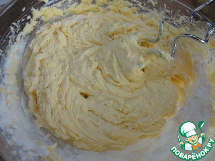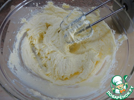Мягкое сливочное масло взбить с сахаром и ванильным сахаром. -