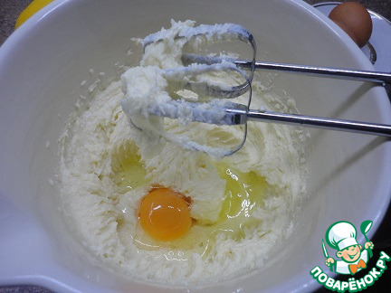 Продолжая взбивать, по одному добавить яйца.