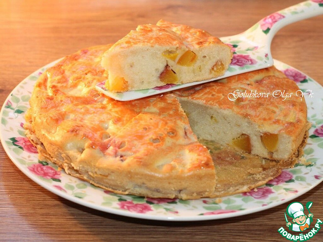 Пирог в меру сладкий, очень мягкий и приятный на вкус. Тесто на растительном масле с добавлением долек персика. Персики можно заменить на другие фрукты или ягоды.