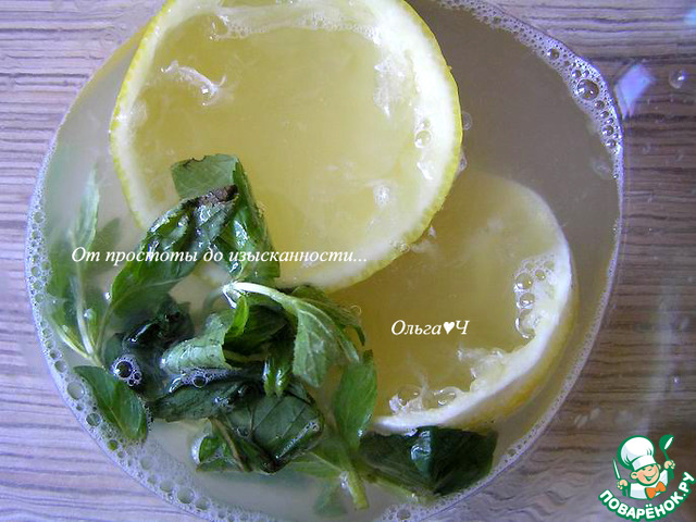 Лимон разрежьте пополам, выжмите сок, добавьте мяту, раздавите немного ложкой и залейте все 0,6 л воды.