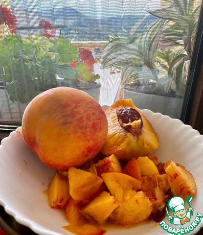 А еще … у соседа созрели персики. Поделился, конечно. У нас в горах по-другому нельзя. Вот и едим.