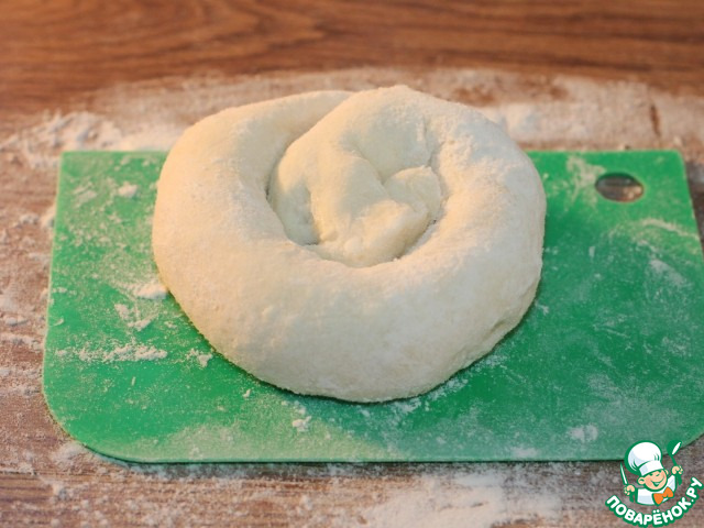 • 5. Затем подпыляем столешницу мукой и продолжаем вымешивать тесто. Собираем тесто в ком и округляем. На тесто у меня ушло ровно 160 грамм муки.