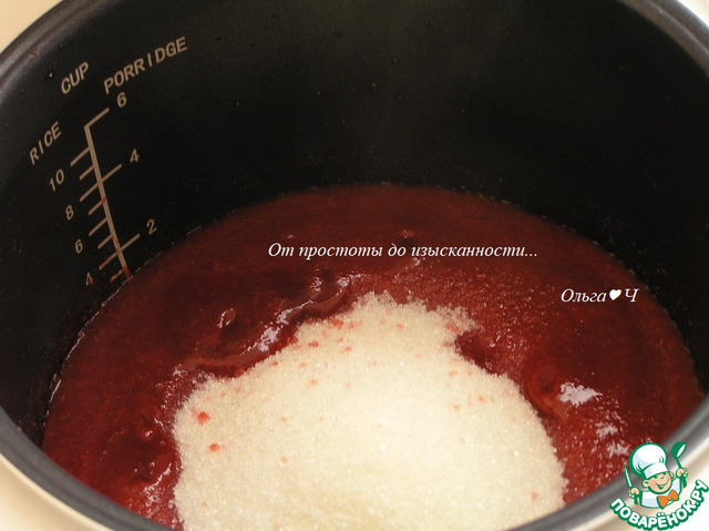 Выложите в чашу мультиварки (можно готовить и в обычной кастрюле, мне просто в мультиварке удобнее), всыпьте желфикс смешанный с 2 ст. л. сахара, перемешайте.