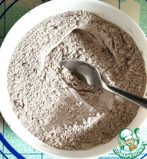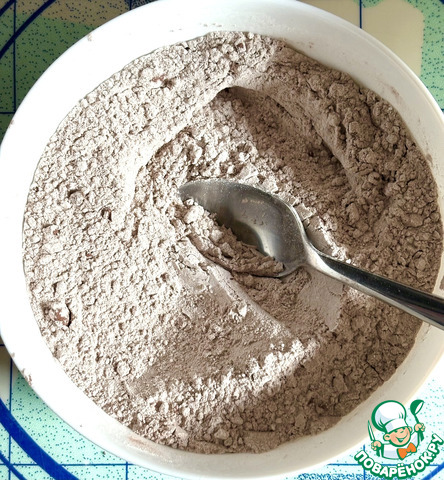 Смешать муку, разрыхлитель, ванильный сахар, крахмал и какао-порошок.