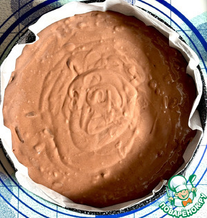 Застелить форму (26 см) бумагой для выпечки или смазать форму маслом и обсыпать мукой. Вылить тесто в форму. Выпекать торт примерно 50 - 55 минут (проверить деревянной палочкой).