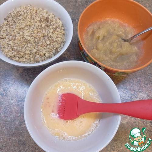 Орехи измельчить, яйцо слегка взбить вилкой, подготовить любимый джем.