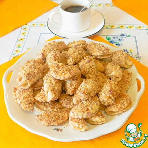 Несколько печенек я приготовила в виде рогаликов с начинкой из вареной сгущенки.