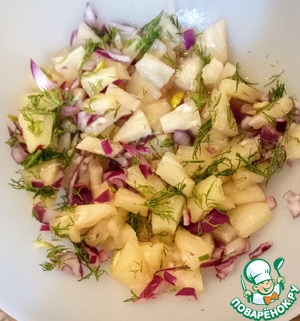 - Ананас (260 г, нарезанный на мелкие кусочки) — 1 бан.